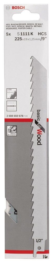 Bosch - Basic Serisi Ahşap için Panter Testere Bıçağı S 1111 K - 5'li 2.608.650.678 Bosch - Basic Serisi Ahşap için Panter Testere Bıçağı S 1111 K - 5'li