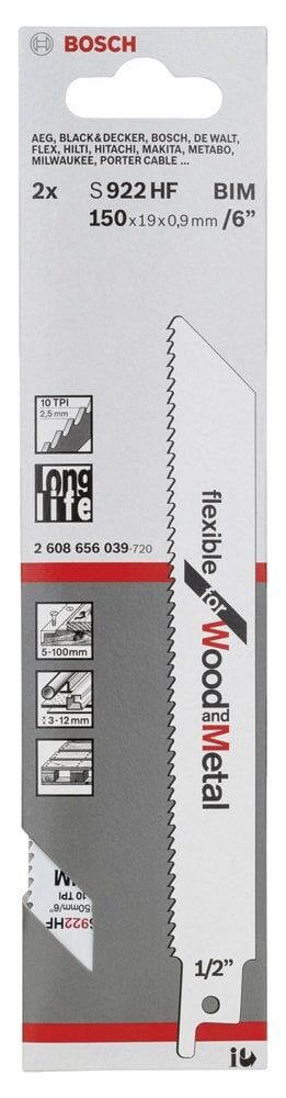 Bosch - Flexible Serisi Ahşap Ve Metal için Panter Testere Bıçağı S 922 HF - 2'li