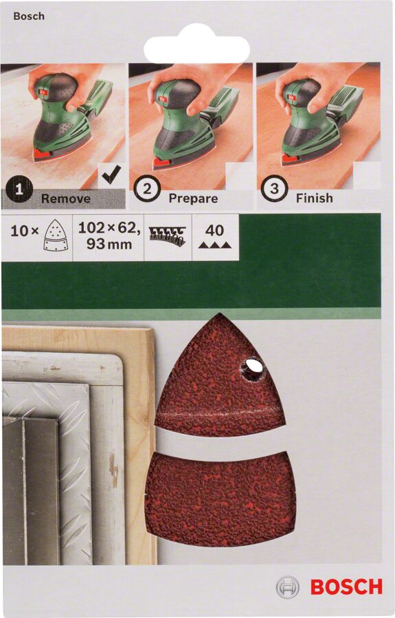Bosch - Multi Zımpara Kağıdı 10'lu, 102 x 62/93 mm 40 Kum 11 Delik