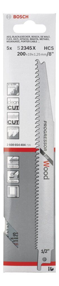 Bosch - Progressor Serisi Ahşap için Panter Testere Bıçağı S 2345 X - 5'li